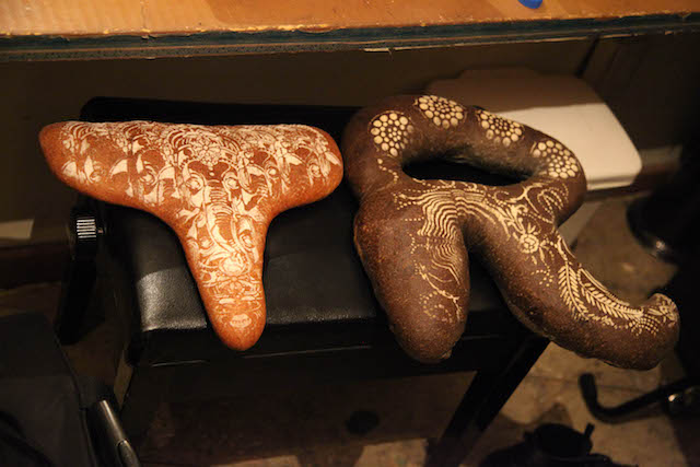 Two bread sculptures in the shape of his initials, from the great bakery Paradise Alley
